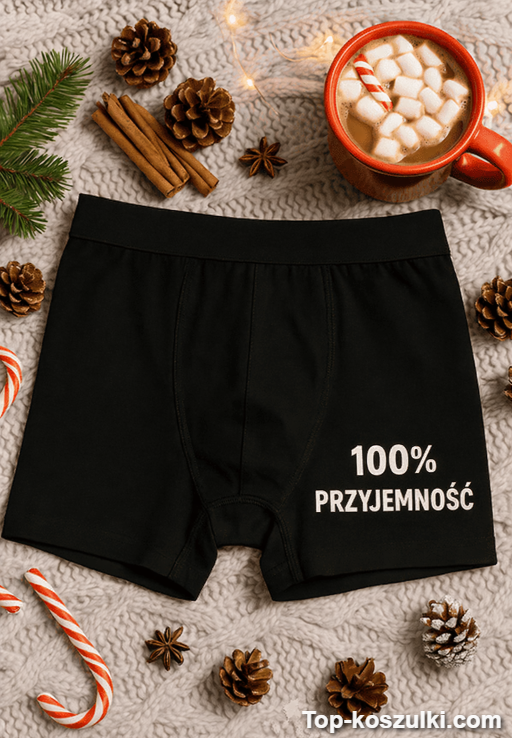 Śmieszne bokserki 100% przyjemność mówią wszystko za Ciebie – bez zbędnych tłumaczeń. Napis „100% PRZYJEMNOŚĆ” robi robotę, gdy chcesz rozbroić atmosferę i wywołać uśmiech 😄