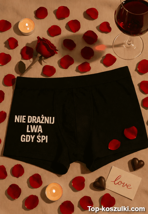 Śmieszne bokserki nie drażnij lwa gdy śpi mówią wszystko, zanim jeszcze padnie pierwsze słowo. Idealne dla faceta, który rano ma tryb „nie podchodź” i robi z tego żart 😴🦁