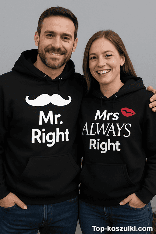 Bluzy dla par Mr Right Mrs Always Right to idealny zestaw dla tych, którzy lubią droczyć się z humorem i nie boją się małej „wojny na racje” w wersji premium. Napis „Mr. Right” kontra „Mrs ALWAYS Right” robi robotę od pierwszego spojrzenia – i gwarantuje uśmiechy (oraz zaczepki) 😏