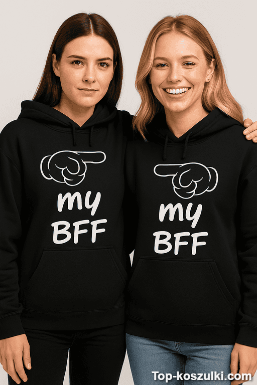 Szukasz czegoś, co jest jednocześnie zabawne, trochę bezczelne i mega „nasze”? Te bluzy z napisem „my BFF” mówią wszystko w trzech słowach. I robią to tak, że ludzie od razu wiedzą, kto tu jest duetem nie do ruszenia 😉