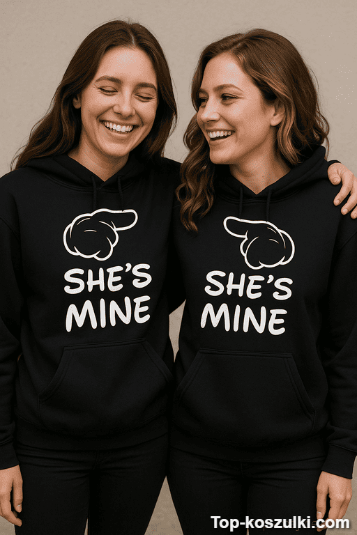Bluzy dla par She’s Mine to duet, który mówi wszystko bez tłumaczenia 😏. Napis „SHE’S MINE” robi robotę: trochę zazdrośnie, trochę żartem, totalnie w Waszym stylu.