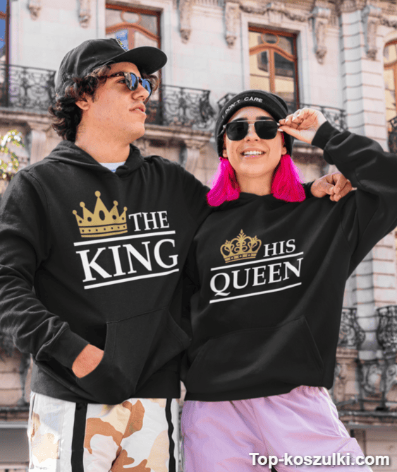 Bluzy dla par king queen z napisem „THE KING / HIS QUEEN” to szybki sposób, żeby pokazać światu, kto tu rządzi… a kto rządzi jeszcze sprytniej 😉. Ten zestaw robi robotę na zdjęciach i wywołuje uśmiech u ludzi, którzy łapią żart od razu.