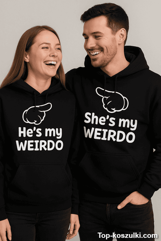 Szukasz czegoś, co jest jednocześnie słodkie i bezczelne? Te bluzy dla par weirdo robią robotę od pierwszego spojrzenia: „He’s my WEIRDO” i „She’s my WEIRDO” to mały manifest miłości z przymrużeniem oka. 😎