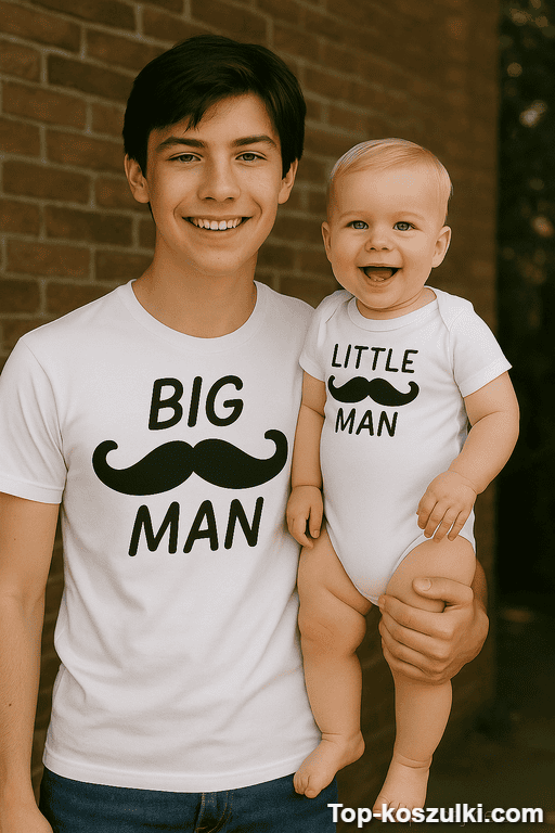 Jeśli szukasz prezentu, który od razu robi klimat i wywołuje uśmiech, ten śmieszna koszulka i body zestaw tata syn jest strzałem w dziesiątkę. Napis BIG MAN / LITTLE MAN to żart, który rozumie każdy — i od razu wiadomo, kto tu rządzi (a kto dopiero się uczy) 😉