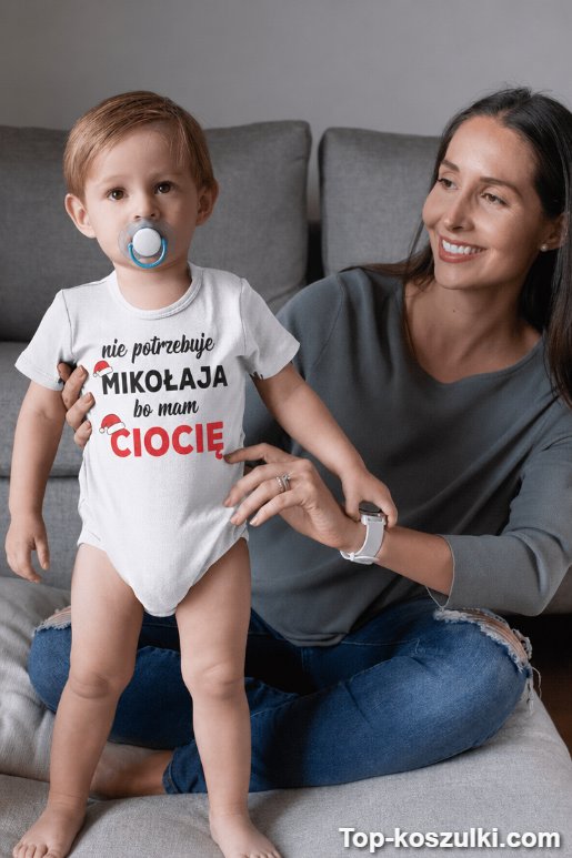 Szukasz czegoś, co wywoła śmiech szybciej niż dzwonek do drzwi w grudniu? To śmieszne body niemowlęce prezent ciocia ma gotowy tekst, który robi całą robotę: „nie potrzebuję MIKOŁAJA bo mam CIOCIĘ” 🎁