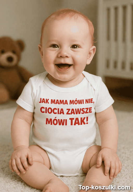 Szukasz czegoś, co od razu wywoła śmiech i zrobi furorę na rodzinnych spotkaniach? To śmieszne body niemowlęce prezent ciocia ma wypisany wprost na nadruku: „JAK MAMA MÓWI NIE, CIOCIA ZAWSZE MÓWI TAK!” 😄