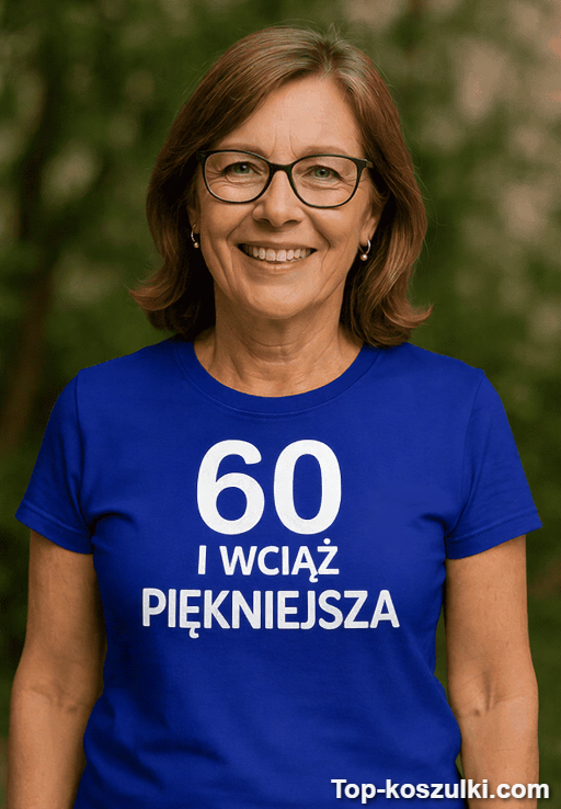 Śmieszna koszulka 60 urodziny, która mówi wszystko za Ciebie: „60 I WCIĄŻ PIĘKNIEJSZA”. Idealna, gdy jubilatka ma dystans, błysk w oku i lubi zbierać komplementy. 😉🎉