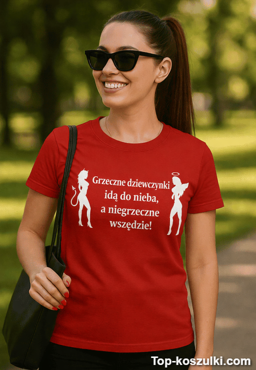 Śmieszna koszulka grzeczne dziewczynki z hasłem „Grzeczne dziewczynki idą do nieba, a niegrzeczne wszędzie!” to klasyk z pazurem — lekko zadziorny, bardzo memiczny i zawsze na czasie. Zakładasz i od razu wiadomo, że nuda nie ma wstępu 😉