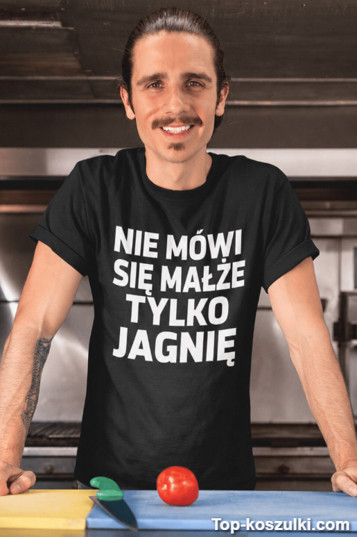 Śmieszna koszulka małże jagnię to żart językowy, który od razu odpala uśmiech i komentarze. Napis „NIE MÓWI SIĘ MAŁŻE TYLKO JAGNIĘ” jest tak bezczelnie prosty, że działa na każdej imprezie 😅