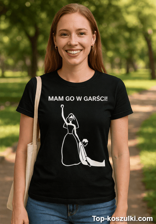 Jeśli wpisujesz w głowie „koszulka mam go w garści” albo „śmieszna koszulka z napisem mam go w garści”, to właśnie ją znalazłeś — prosty przekaz, mocny efekt i humor, który zostaje w pamięci 😉