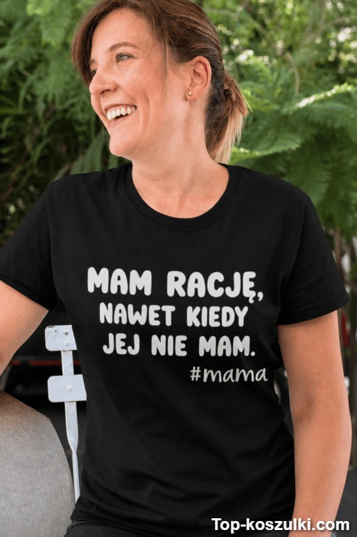 Śmieszna koszulka mam rację mama to idealny sposób, żeby mama wygrała każdą dyskusję… zanim się zacznie 😄. Napis „MAM RACJĘ, NAWET KIEDY JEJ NIE MAM. #mama” mówi wszystko — i robi to bez litości.