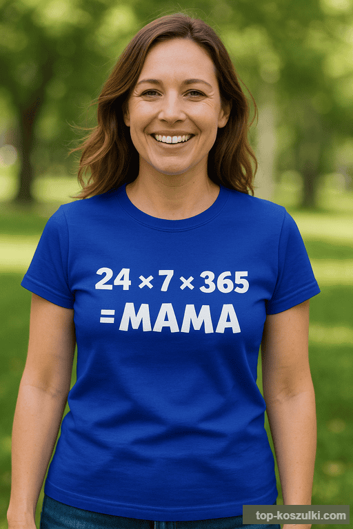 Śmieszna koszulka mama cały rok z napisem „24 × 7 × 365 = MAMA” to mały manifest wielkiej mocy. Bo mama nie ma etatu — ona ma tryb ciągły, a ta koszulka mówi to głośno i z przymrużeniem oka 😄