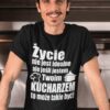 Tekst na koszulce sprytnie podsumowuje jej supermoce: od prania i prasowania, przez wybrane dania, po doradztwo 24/7 i darmowe podwózki. A „bezzwrotne pożyczki”? No cóż… klasyk, który bawi za każdym razem 😅