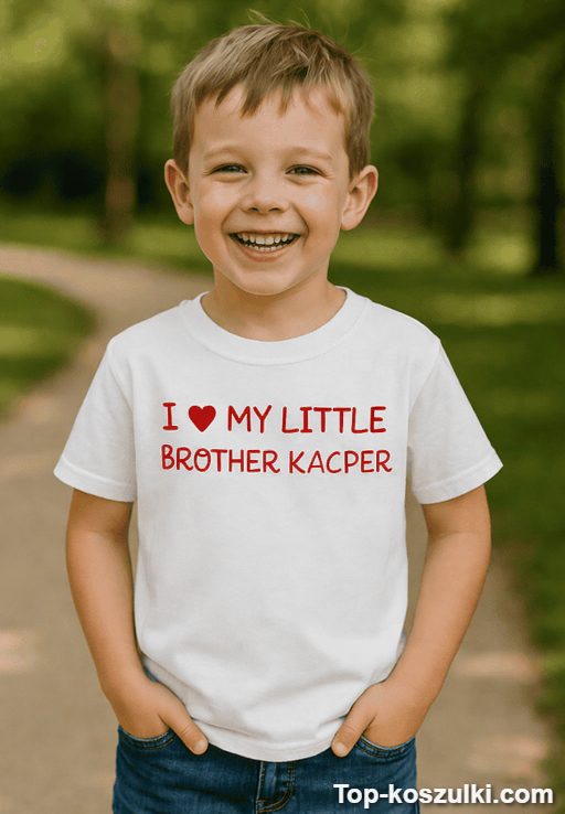 Koszulka dziecięca kocham braciszka robi robotę od pierwszego spojrzenia: jest słodko, zabawnie i lekko zaczepnie 😄 Napis mówi jasno, kto tu rządzi w rodzeństwie (i kto ma najsłodszego brata!).