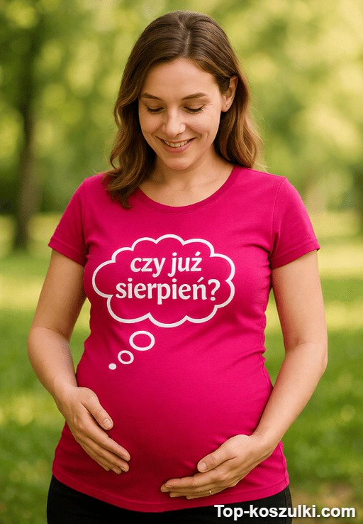 Ta koszulka ciążowa z napisem „czy już sierpień?” to mały, bezczelnie uroczy komentarz do wielkiego odliczania. Zamiast kolejnego „jak się czujesz?”, jest śmiech i porozumiewawcze spojrzenia 😉