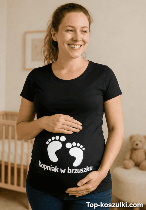Dla przyszłej mamy z dystansem, dla partnera, który chce wywołać uśmiech, albo dla przyjaciółki z pracy, która właśnie ogłosiła radosną nowinę. To też świetny pomysł, jeśli szukasz czegoś w stylu „zabawna koszulka ciążowa z napisem kopniak w brzuszku” – prosto, czytelnie i od razu wiadomo, o co chodzi.