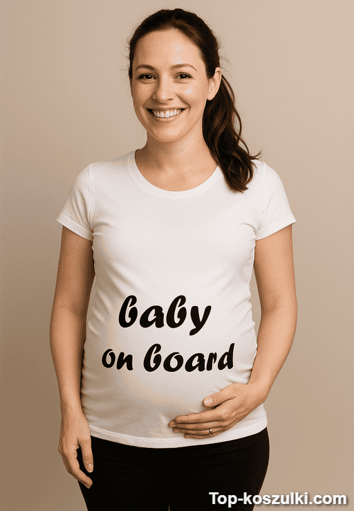 Śmieszna koszulka ciążowa baby on board to mały komunikat, który robi wielkie wrażenie. Napis „baby on board” od razu wywołuje uśmiech i daje sygnał: przyszła mama ma poczucie humoru i nie boi się go używać 😉