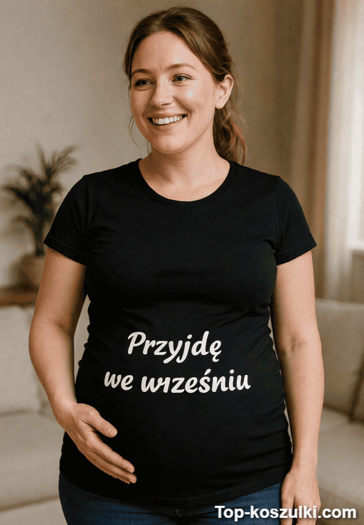 Jeśli szukasz pomysłu na prezent: śmieszny T-shirt dla ciężarnej „przyjdę we wrześniu” jest prosty, czytelny i ma ten bezczelnie uroczy vibe, który zostaje w pamięci 😎