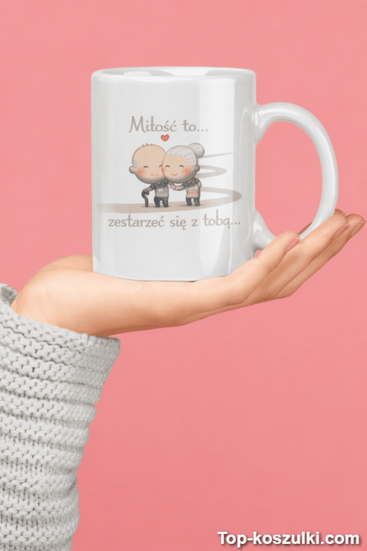 Śmieszny kubek miłość zestarzeć się to prezent, który mówi więcej niż kartka z życzeniami. Napis „Miłość to… zestarzeć się z tobą…” trafia w punkt: słodko, ale z lekkim przymrużeniem oka 😄