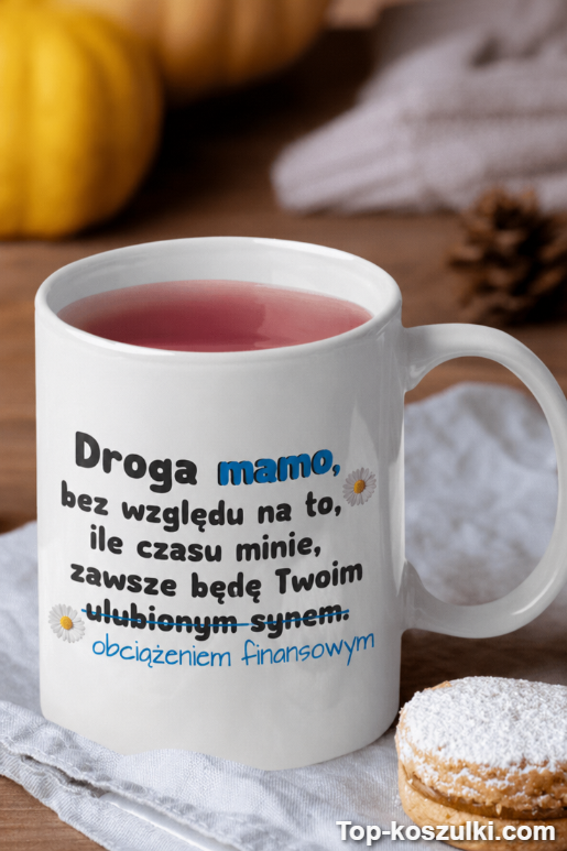 Jeśli szukasz pomysłu na śmieszny kubek dla syna dla mamy albo prezent z napisem o obciążeniu finansowym, właśnie go znalazłeś 😉