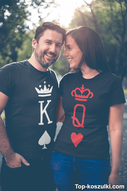 Jeśli Wasza relacja to trochę flirtu, trochę rywalizacji i dużo chemii, ta koszulka dla par king queen jest jak znak rozpoznawczy. Nadruk K ♠ / Q ♥ robi robotę: jeden jest Królem, druga Królową… i oboje wiedzą, że to gra zespołowa 😉