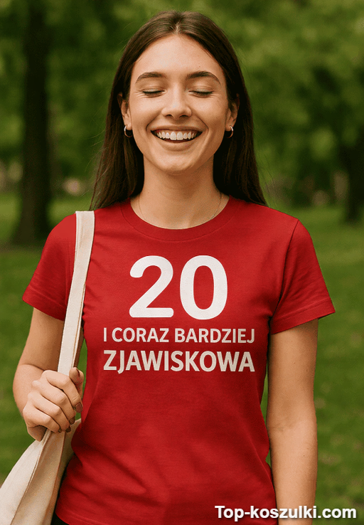 Szukasz pomysłu na śmieszna koszulka 20 lat prezent, który nie wyląduje na dnie szuflady? Ten nadruk „20 I CORAZ BARDZIEJ ZJAWISKOWA” robi robotę od pierwszego spojrzenia — trochę bezczelny, bardzo pewny siebie i totalnie imprezowy 😎.