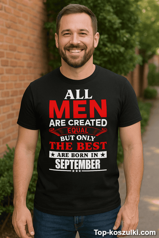 Jeśli szukasz prezentu, który od razu wywoła uśmiech i zrobi wejście na imprezie, ta śmieszna koszulka urodziny wrzesień jest strzałem w dziesiątkę. Napis „ALL MEN ARE CREATED EQUAL BUT ONLY THE BEST ARE BORN IN SEPTEMBER” to czysty, bezczelny komplement w formie żartu 😉