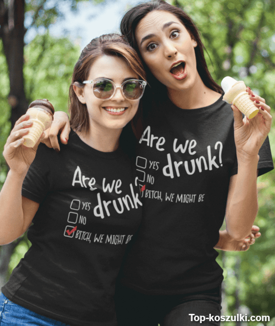 Śmieszna koszulka Are We Drunk to szybki sposób, żeby rozkręcić klimat bez zbędnych pytań. Napis „Are we drunk? … BITCH, WE MIGHT BE” robi robotę od pierwszego spojrzenia i wywołuje ten śmiech, który słychać w całym towarzystwie. 🍻