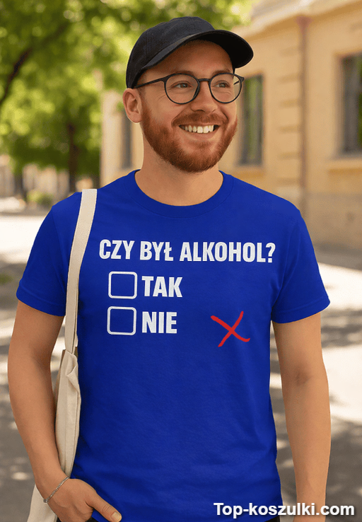 Śmieszna koszulka czy był alkohol robi robotę od pierwszego spojrzenia: pytanie „CZY BYŁ ALKOHOL?” i dwie odpowiedzi, które prowokują do żartów. To ten typ nadruku, który uruchamia lawinę tekstów typu „ja nic nie pamiętam” i „to nie ja” 😂