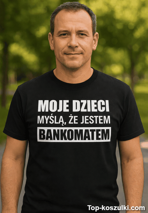 To nie jest kolejny nudny upominek – to prezent z charakterem i wspólnym żartem. Jeśli wpisujesz w głowie „śmieszna koszulka bankomat dla rodzica” albo „koszulka dzieci myślą że jestem bankomatem prezent”, właśnie ją znalazłeś.