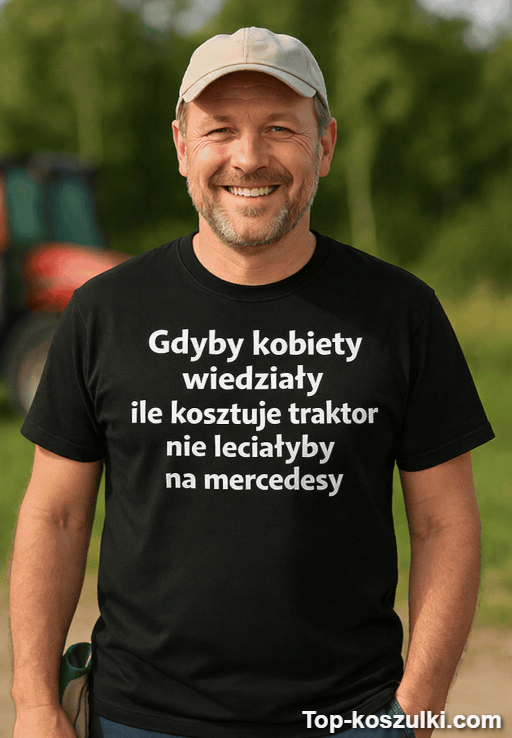 Wyszukujesz coś w stylu „śmieszna koszulka traktor i mercedesy” albo „koszulka traktor mercedesy”? To właśnie ten typ humoru, który zbiera komentarze i robi dzień.