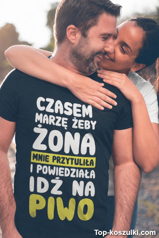 Śmieszna koszulka idź na piwo to idealny sposób, żeby rozładować atmosferę jednym zdaniem. Nadruk „CZASEM MARZĘ ŻEBY ŻONA MNIE PRZYTULIŁA I POWIEDZIAŁA IDŹ NA PIWO” trafia prosto w punkt — bo czasem najlepsza rada brzmi właśnie tak. 😄