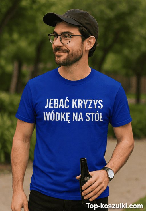 Śmieszna koszulka jebać kryzys to mały manifest na duże czasy — jedno zdanie i od razu wiadomo, że dystans do życia masz opanowany do perfekcji. Napis „JEBAĆ KRYZYS WÓDKĘ NA STÓŁ” robi robotę: rozbraja napięcie i zbiera spojrzenia w sekundę 😄