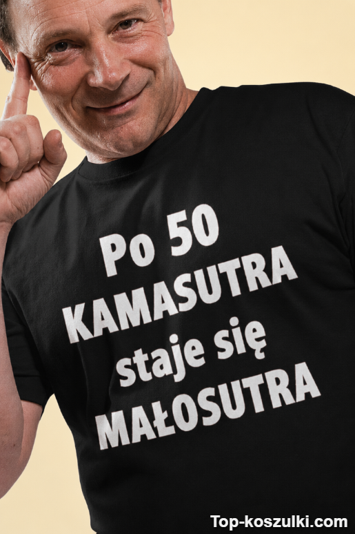 Jeśli szukasz prezentu, który wywoła śmiech od pierwszego spojrzenia, śmieszna koszulka kamasutra prezent jest strzałem w dziesiątkę. Tekst „Po 50 KAMASUTRA staje się MAŁOSUTRA” trafia dokładnie w ten moment, kiedy humor wygrywa z ambicjami 😅