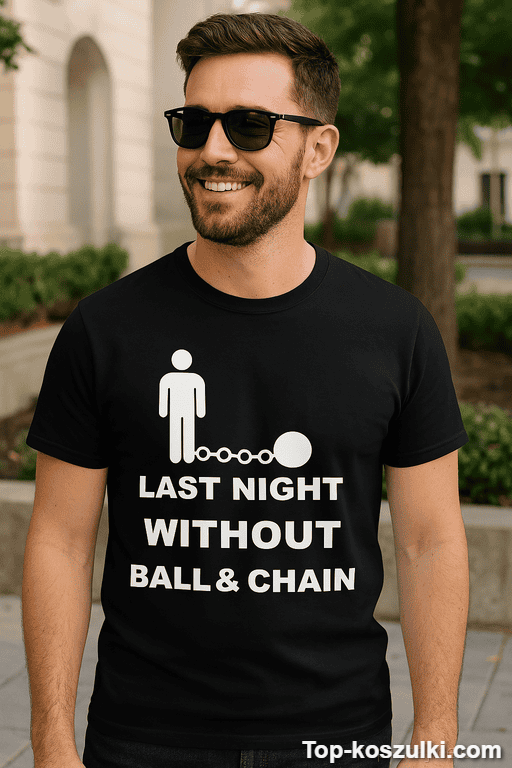 Śmieszna koszulka last night ball chain z tekstem LAST NIGHT WITHOUT BALL & CHAIN to idealny wybór dla kogoś, kto lubi humor z lekką nutą zadziorności. Jedno zdanie, a wszyscy już wiedzą, że to nie była „zwykła noc” 😉