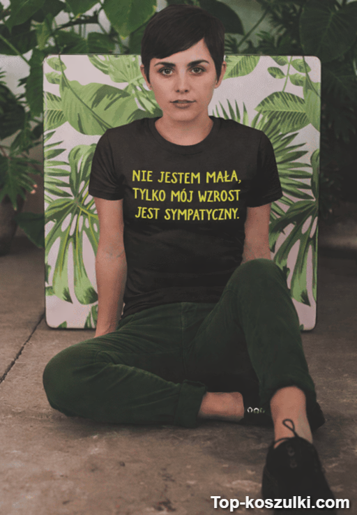 Śmieszna koszulka nie jestem mała to gotowy tekst, gdy ktoś znowu rzuci „ale ty jesteś niska!”. Zamiast tłumaczeń masz jedną, genialnie bezczelną odpowiedź: „NIE JESTEM MAŁA, TYLKO MÓJ WZROST JEST SYMPATYCZNY.” 😉