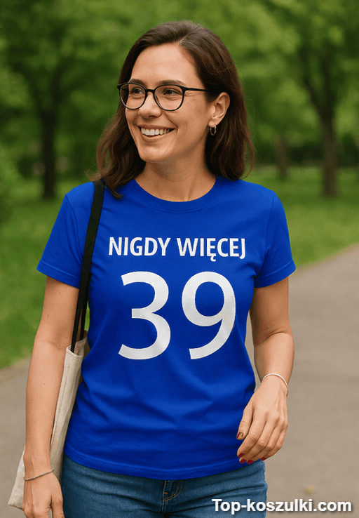 Śmieszna koszulka nigdy więcej 39 lat mówi to, co wszyscy myślą, ale nikt nie ma odwagi powiedzieć na głos. Idealna na urodzinową imprezę, gdy „39” wraca… kolejny raz 😄