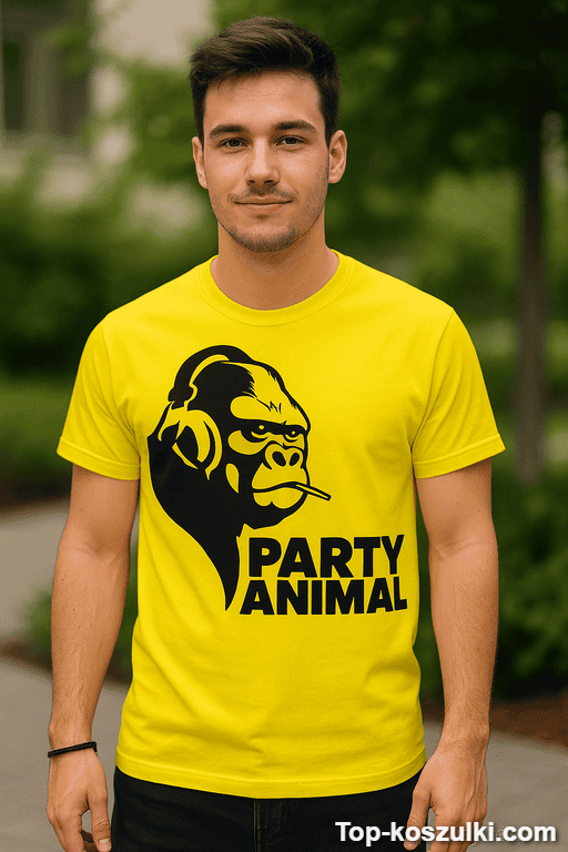 Śmieszna koszulka party animal z hasłem „PARTY ANIMAL” to Twój legalny pretekst, żeby być duszą towarzystwa bez tłumaczenia się komukolwiek. Zakładasz i wszyscy już wiedzą, kto podkręca klimat 😎