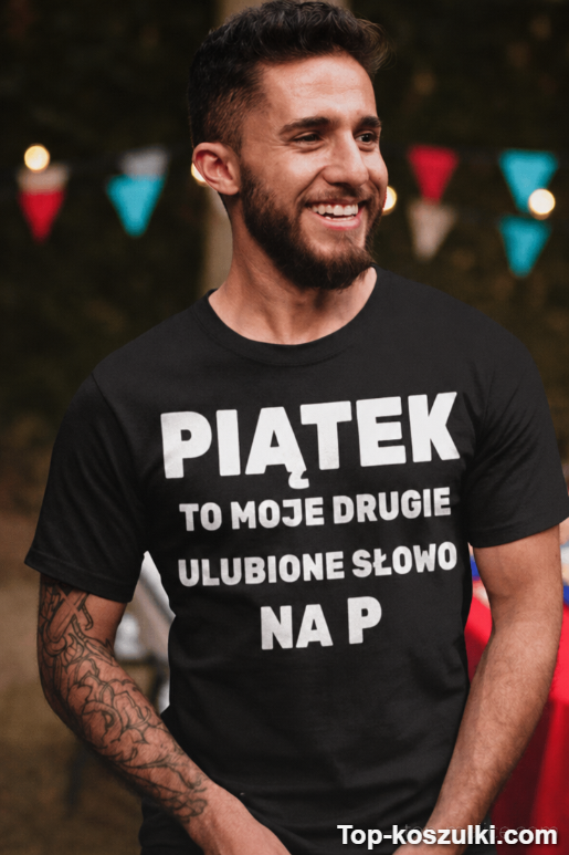 Śmieszna koszulka piątek ulubione słowo na P mówi to, co wszyscy myślą, ale nie każdy ma odwagę wypowiedzieć na głos 😏 Idealna na koniec tygodnia, gdy jedyne plany to „byle do piątku”.
