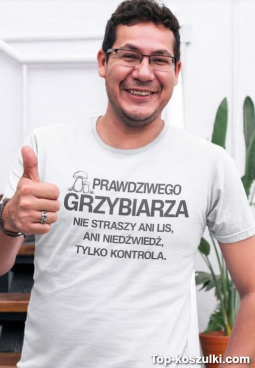 Śmieszna koszulka prawdziwy grzybiarz kontrola