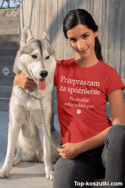 Śmieszna koszulka przepraszam spóźnienie pies mówi za Ciebie to, co myślisz, gdy znów wpadasz „tylko minutkę” po czasie. Napis „Przepraszam za spóźnienie. Po drodze zobaczyłam psa.” działa jak natychmiastowy uśmiech i świetny starter rozmowy 🐶