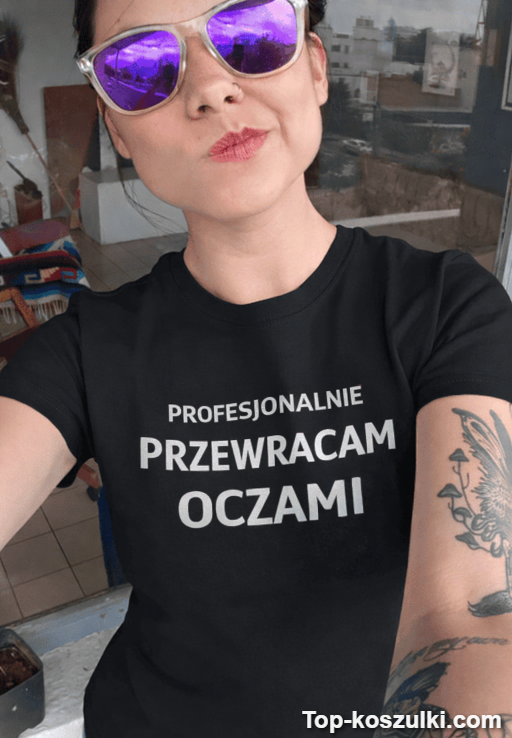 Śmieszna koszulka przewracam oczami to mały manifest dla tych, którzy mają talent do komentowania rzeczywistości samym spojrzeniem. Napis „PROFESJONALNIE PRZEWRACAM OCZAMI” mówi wszystko, zanim zdążysz cokolwiek wyjaśnić 🙄.