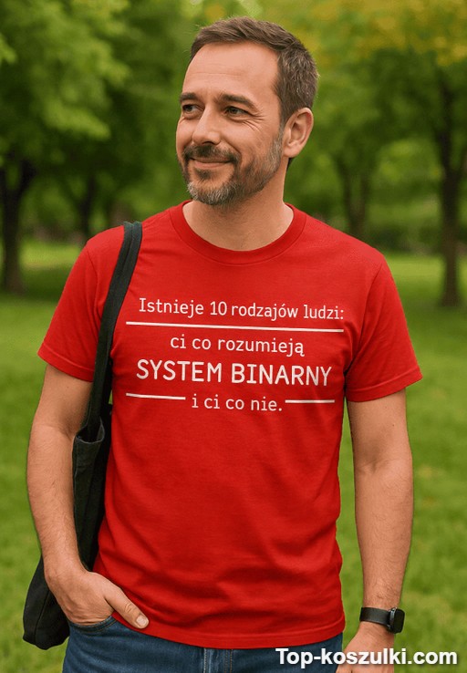 Śmieszna koszulka system binarny to klasyk dla tych, którzy wiedzą, że „10” nie zawsze znaczy dziesięć. Tekst „Istnieje 10 rodzajów ludzi: ci co rozumieją SYSTEM BINARNY i ci co nie.” wywołuje uśmiech, a czasem też lekkie przewrócenie oczami — idealnie 😏