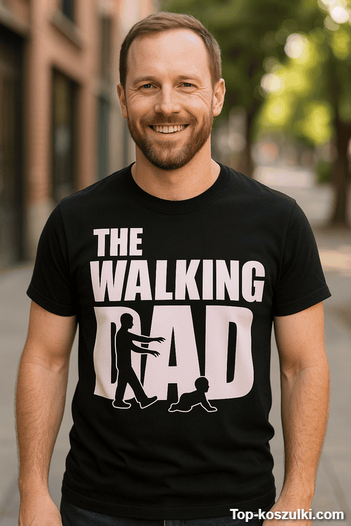 Śmieszna koszulka The Walking Dad to idealny tekstylny żart dla taty, który po nieprzespanej nocy chodzi jak zombie. Napis „THE WALKING DAD” robi robotę szybciej niż kawa ☕️