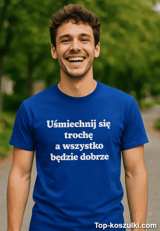 Śmieszna koszulka uśmiechnij się a wszystko będzie dobrze to idealny sposób, żeby powiedzieć światu: „spokojnie, ogarniemy to” — bez nadęcia i bez kaznodziejskiego tonu. Tekst na koszulce „Uśmiechnij się trochę a wszystko będzie dobrze” działa jak szybki reset humoru, zwłaszcza gdy dzień próbuje być mądrzejszy od Ciebie 😉