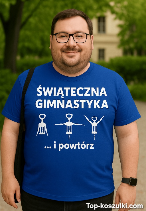 Śmieszna koszulka świąteczna gimnastyka to idealny sposób, żeby wnieść trochę bezczelnego humoru do świątecznego klimatu. Napis „Świąteczna gimnastyka… i powtórz” mówi wszystko: raz jeszcze, bo przecież tradycja zobowiązuje 😄