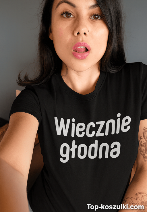 Śmieszna koszulka wiecznie głodna z napisem „Wiecznie głodna” mówi wszystko, zanim jeszcze zdążysz otworzyć menu. To ten typ humoru, który rozbraja w kolejce po kawę i sprawia, że znajomi od razu wiedzą, co Cię uszczęśliwia. 🍕