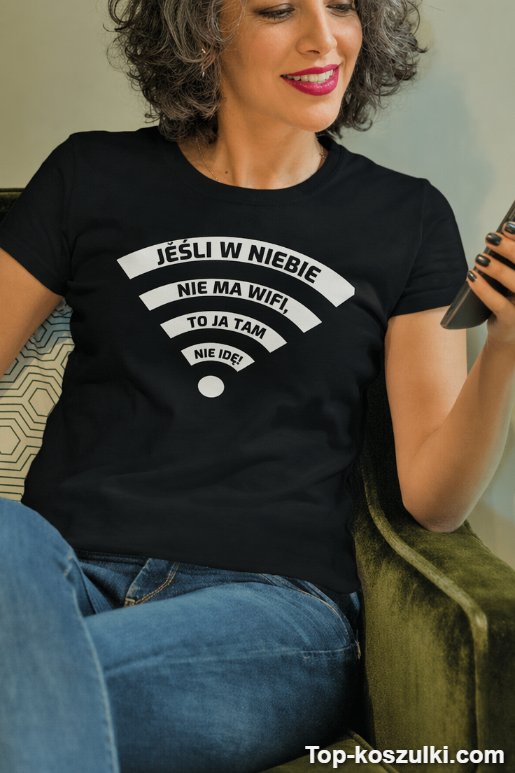 Śmieszna koszulka wifi w niebie to idealny strzał dla tych, którzy mają dystans do życia i jeszcze większą miłość do sieci. Tekst „JEŚLI W NIEBIE NIE MA WIFI, TO JA TAM NIE IDĘ!” jest bezczelnie zabawny i od razu wywołuje uśmiech — nawet u tych, co udają, że nie scrollują 😉.