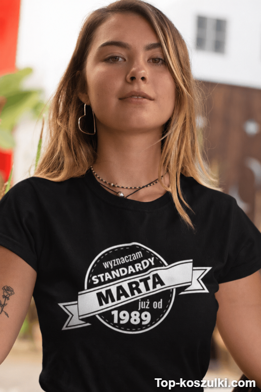 Śmieszna koszulka wyznaczam standardy robi wejście za Ciebie: od razu wiadomo, kto tu ustala zasady gry. Tekst w stylu „wyznaczam STANDARDY [IMIĘ] już od [ROK]” działa jak żart z charakterem – lekko zadziorny, ale wciąż sympatyczny 😉