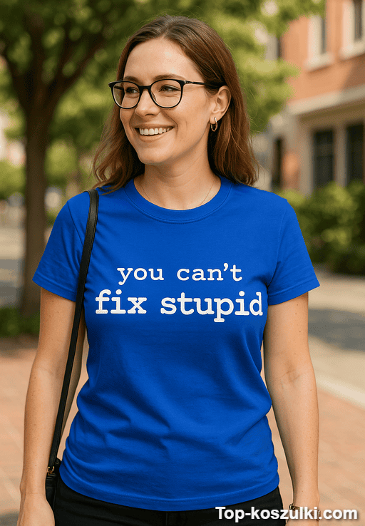 Sprawdzi się dla znajomego z ciętym językiem, partnera z dystansem do ludzi albo współpracownika, który po kolejnym „genialnym” pomyśle w biurze potrzebuje wentyla bezpieczeństwa 😂 Jeśli lubisz sarkazm i suchary, ta koszulka „you can’t fix stupid” jest dokładnie w Twoim stylu.